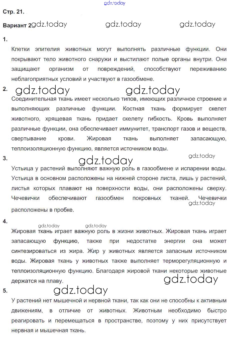 Ответы к Страницы (решение) 21 Тетради-экзаменатору по Биологии для 5-6 класса Сухорукова, Кучменко Просвещение Сферы 2017
