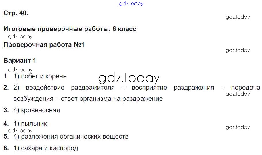На страницах сайта gdz.today вы найдете учебный и вспомогательный материал, направленный на улучшения знаний школьной программы. ГДЗ - онлайн мир знаний Страницы (решение) 40 Тетради-экзаменатору по Биологии для 5-6 класса Сухорукова, Кучменко Просвещение Сферы 2017