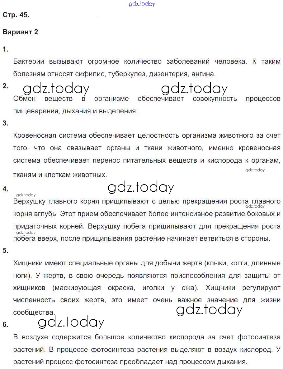 На страницах сайта gdz.today вы найдете учебный и вспомогательный материал, направленный на улучшения знаний школьной программы. ГДЗ - онлайн мир знаний Страницы (решение) 45 Тетради-экзаменатору по Биологии для 5-6 класса Сухорукова, Кучменко Просвещение Сферы 2017