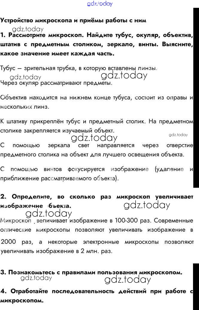 На страницах сайта gdz.today вы найдете учебный и вспомогательный материал, направленный на улучшения знаний школьной программы. ГДЗ - онлайн мир знаний Лабораторные работы Решение к §7 Устройство микроскопа Учебнику по Биологии для 5 класса Пасечник Линейный курс Просвещение 2021