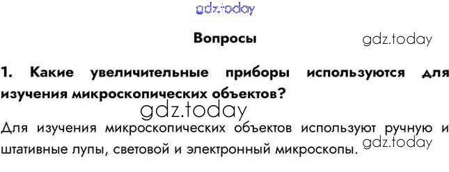 На страницах сайта gdz.today вы найдете учебный и вспомогательный материал, направленный на улучшения знаний школьной программы. ГДЗ - онлайн мир знаний Вопросы Решение к §7 1 Учебнику по Биологии для 5 класса Пасечник Линейный курс Просвещение 2021