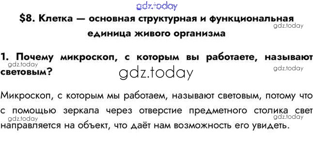 На страницах сайта gdz.today вы найдете учебный и вспомогательный материал, направленный на улучшения знаний школьной программы. ГДЗ - онлайн мир знаний Вопросы в начале параграфа Решение к §8 1 Учебнику по Биологии для 5 класса Пасечник Линейный курс Просвещение 2021