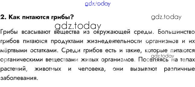 На страницах сайта gdz.today вы найдете учебный и вспомогательный материал, направленный на улучшения знаний школьной программы. ГДЗ - онлайн мир знаний Вопросы Решение к §13 2 Учебнику по Биологии для 5 класса Пасечник Линейный курс Просвещение 2021