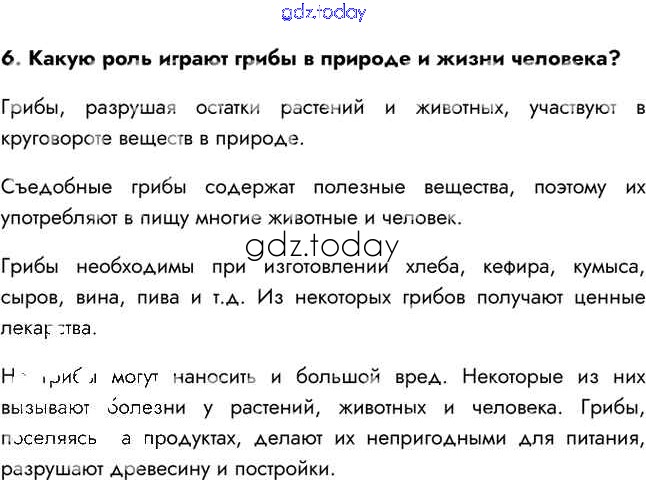 На страницах сайта gdz.today вы найдете учебный и вспомогательный материал, направленный на улучшения знаний школьной программы. ГДЗ - онлайн мир знаний Вопросы Решение к §13 6 Учебнику по Биологии для 5 класса Пасечник Линейный курс Просвещение 2021
