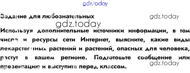 На страницах сайта gdz.today вы найдете учебный и вспомогательный материал, направленный на улучшения знаний школьной программы. ГДЗ - онлайн мир знаний Задание для любознательных Решение к §14 1 Учебнику по Биологии для 5 класса Пасечник Линейный курс Просвещение 2021