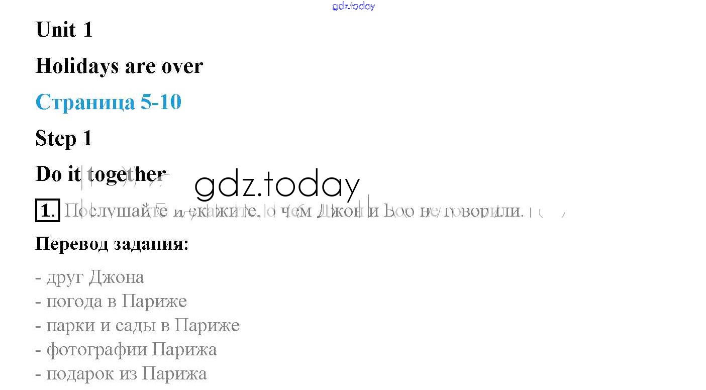 На страницах сайта gdz.today вы найдете учебный и вспомогательный материал, направленный на улучшения знаний школьной программы. ГДЗ - онлайн мир знаний Step 1 Решение к Unit 1. Holidays Are Over 1 Учебнику по Английскому языку для 5 класса Афанасьева, Михеева Дрофа Rainbow 2017