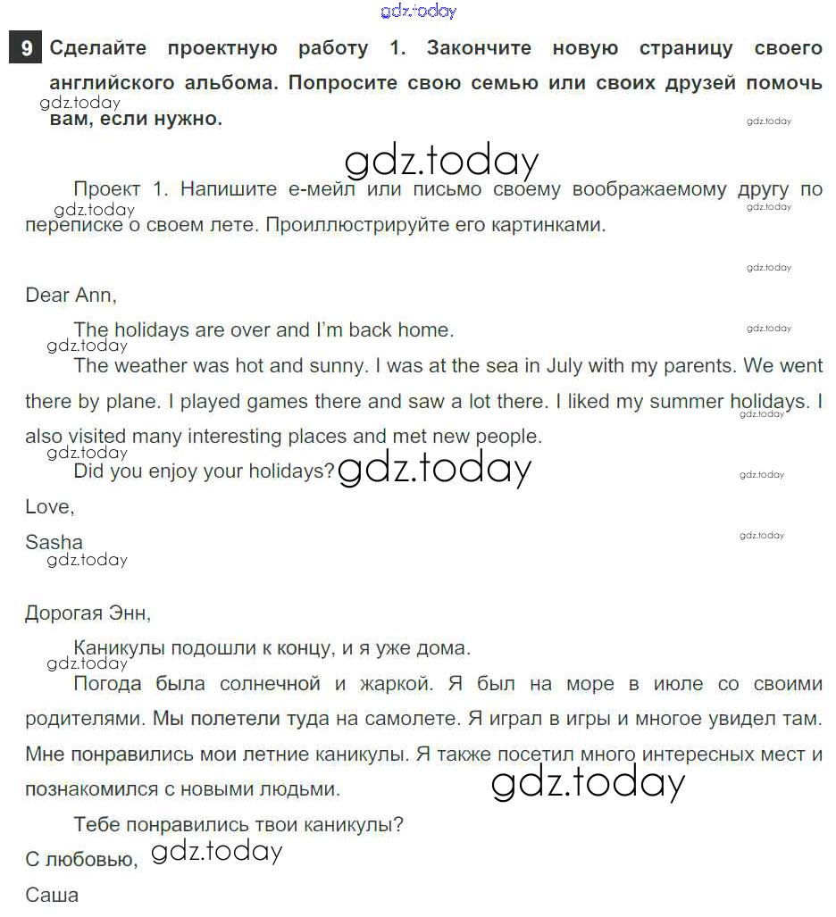 На страницах сайта gdz.today вы найдете учебный и вспомогательный материал, направленный на улучшения знаний школьной программы. ГДЗ - онлайн мир знаний Step 10. Enjoy Yourself Решение к Unit 1. Holidays Are Over 9 Учебнику по Английскому языку для 5 класса Афанасьева, Михеева Дрофа Rainbow 2017