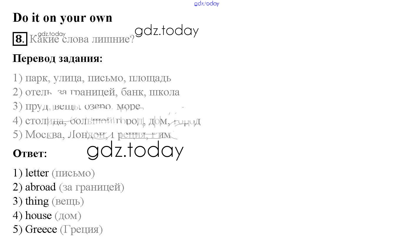 На страницах сайта gdz.today вы найдете учебный и вспомогательный материал, направленный на улучшения знаний школьной программы. ГДЗ - онлайн мир знаний Step 5 Решение к Unit 1. Holidays Are Over 8 Учебнику по Английскому языку для 5 класса Афанасьева, Михеева Дрофа Rainbow 2017