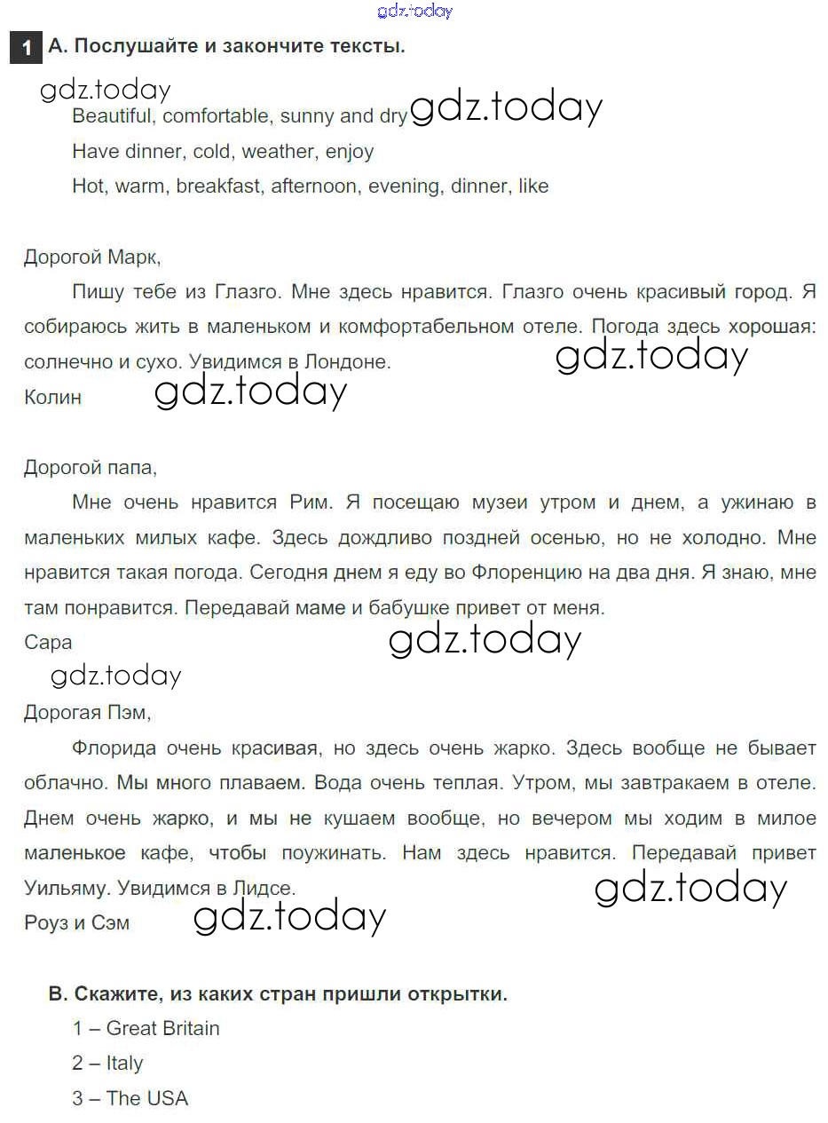 На страницах сайта gdz.today вы найдете учебный и вспомогательный материал, направленный на улучшения знаний школьной программы. ГДЗ - онлайн мир знаний Step 8. Round-up Решение к Unit 1. Holidays Are Over 1 Учебнику по Английскому языку для 5 класса Афанасьева, Михеева Дрофа Rainbow 2017