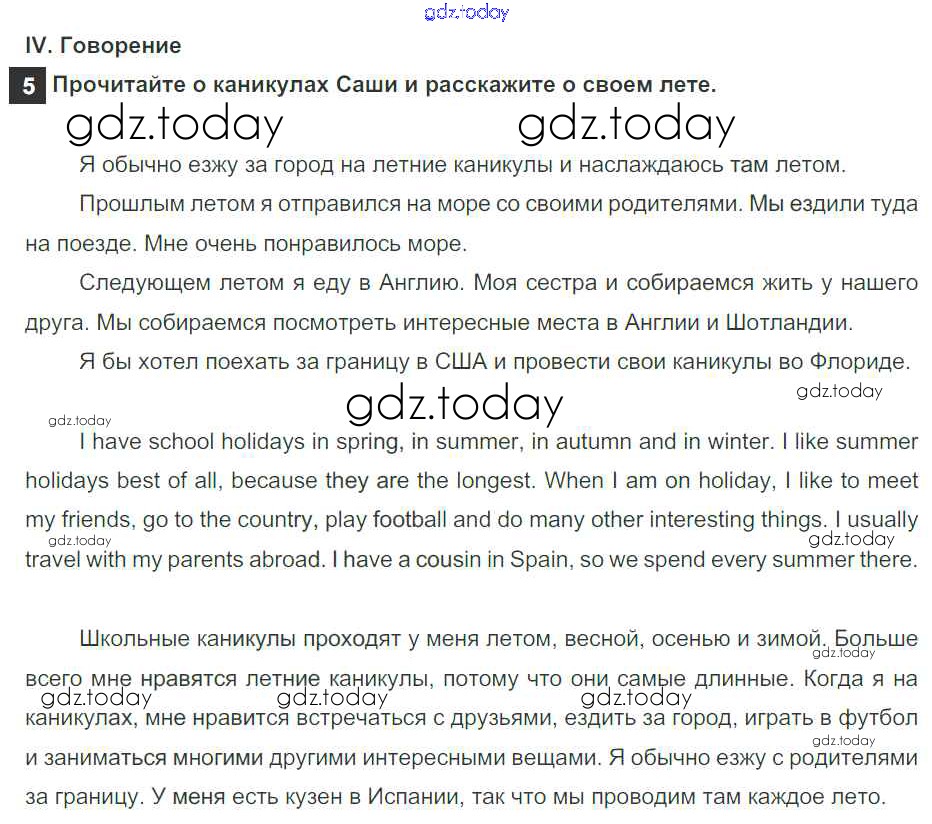 На страницах сайта gdz.today вы найдете учебный и вспомогательный материал, направленный на улучшения знаний школьной программы. ГДЗ - онлайн мир знаний Step 9. Test Yourself Решение к Unit 1. Holidays Are Over 4 Учебнику по Английскому языку для 5 класса Афанасьева, Михеева Дрофа Rainbow 2017