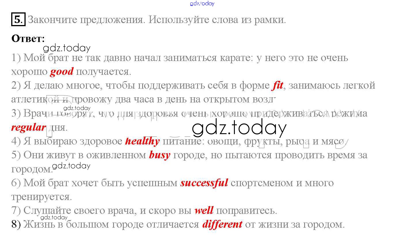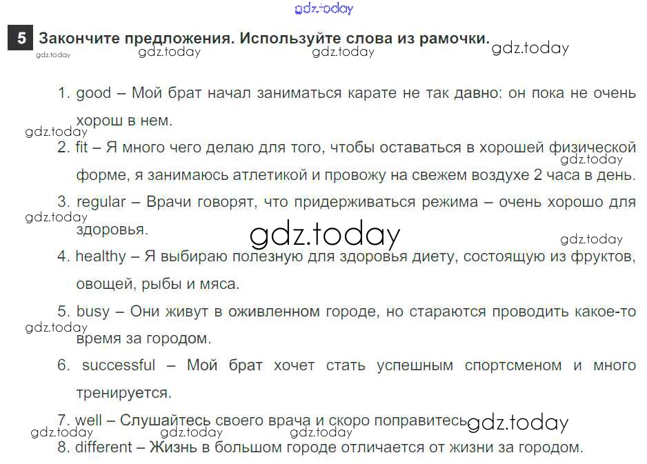 На страницах сайта gdz.today вы найдете учебный и вспомогательный материал, направленный на улучшения знаний школьной программы. ГДЗ - онлайн мир знаний Step 8. Round-up Решение к Unit 3. Healthy Ways 5 Учебнику по Английскому языку для 5 класса Афанасьева, Михеева Дрофа Rainbow 2017