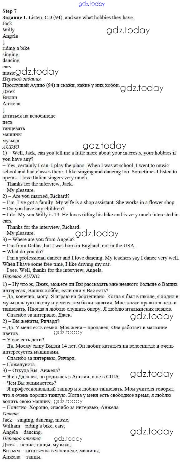 На страницах сайта gdz.today вы найдете учебный и вспомогательный материал, направленный на улучшения знаний школьной программы. ГДЗ - онлайн мир знаний Step 7 Решение к Unit 4. After School 1 Учебнику по Английскому языку для 5 класса Афанасьева, Михеева Дрофа Rainbow 2017