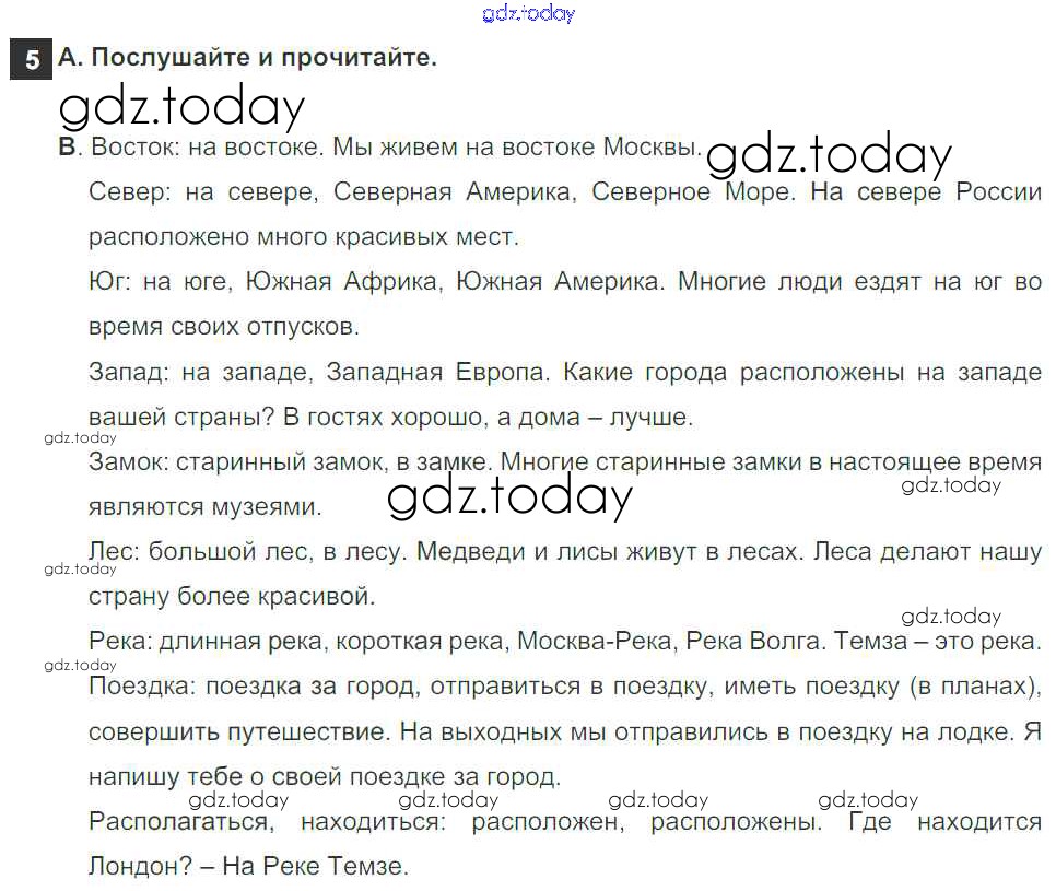 На страницах сайта gdz.today вы найдете учебный и вспомогательный материал, направленный на улучшения знаний школьной программы. ГДЗ - онлайн мир знаний Step 1 Решение к Unit 5. From Place to Place 5 Учебнику по Английскому языку для 5 класса Афанасьева, Михеева Дрофа Rainbow 2017
