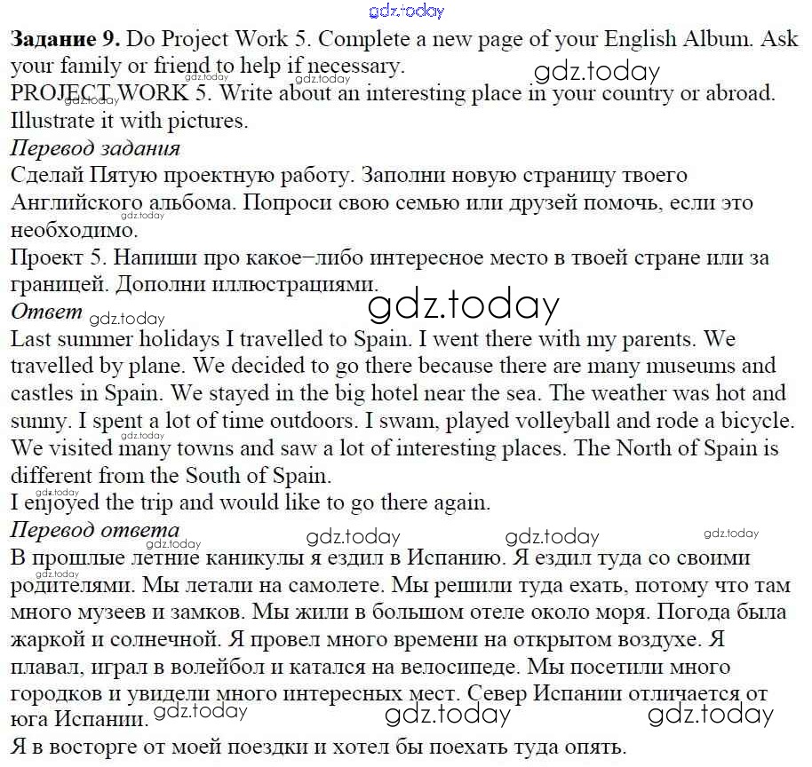 Ответы к Step 10. Enjoy Yourself Решение к Unit 5. From Place to Place 9 Учебнику по Английскому языку для 5 класса Афанасьева, Михеева Дрофа Rainbow 2017