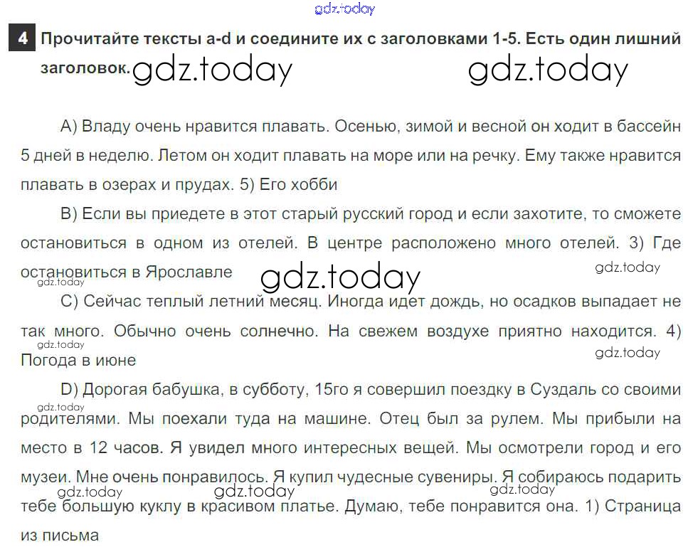 На страницах сайта gdz.today вы найдете учебный и вспомогательный материал, направленный на улучшения знаний школьной программы. ГДЗ - онлайн мир знаний Step 6 Решение к Unit 5. From Place to Place 4 Учебнику по Английскому языку для 5 класса Афанасьева, Михеева Дрофа Rainbow 2017