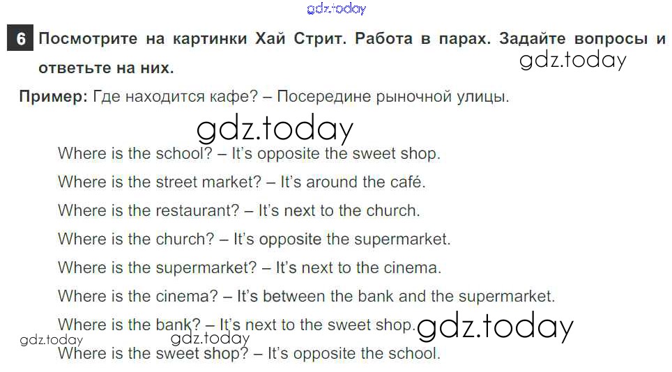 На страницах сайта gdz.today вы найдете учебный и вспомогательный материал, направленный на улучшения знаний школьной программы. ГДЗ - онлайн мир знаний Step 6 Решение к Unit 5. From Place to Place 6 Учебнику по Английскому языку для 5 класса Афанасьева, Михеева Дрофа Rainbow 2017