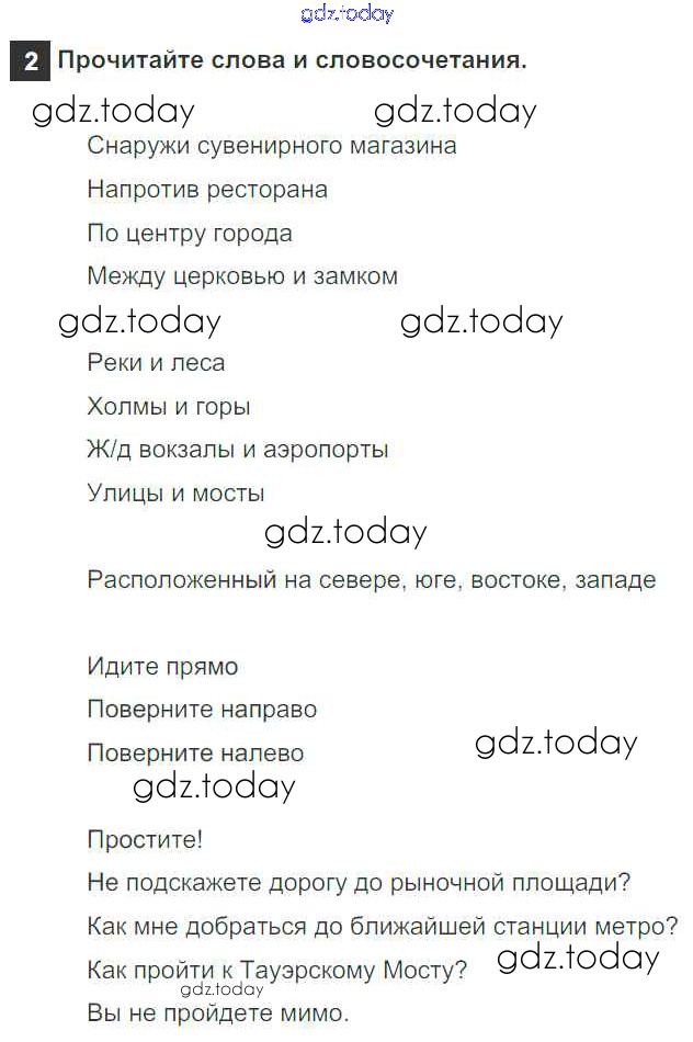 На страницах сайта gdz.today вы найдете учебный и вспомогательный материал, направленный на улучшения знаний школьной программы. ГДЗ - онлайн мир знаний Step 8. Round-up Решение к Unit 5. From Place to Place 2 Учебнику по Английскому языку для 5 класса Афанасьева, Михеева Дрофа Rainbow 2017