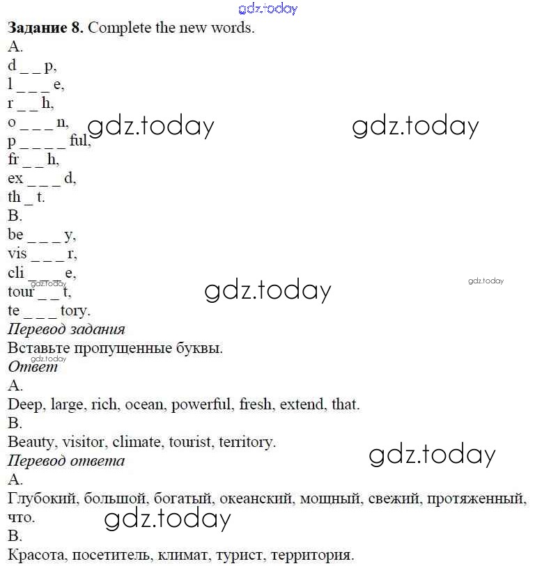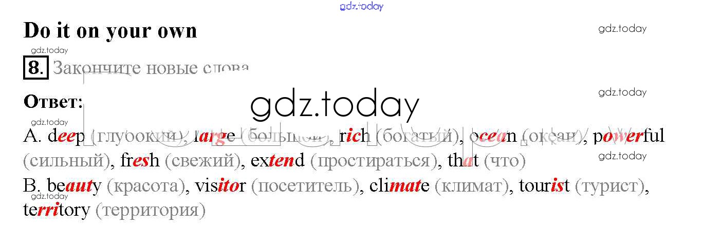 На страницах сайта gdz.today вы найдете учебный и вспомогательный материал, направленный на улучшения знаний школьной программы. ГДЗ - онлайн мир знаний Step 1 Решение к Unit 6. About Russia 8 Учебнику по Английскому языку для 5 класса Афанасьева, Михеева Дрофа Rainbow 2017