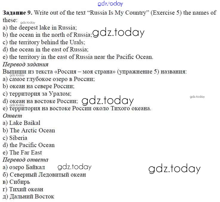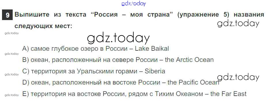 На страницах сайта gdz.today вы найдете учебный и вспомогательный материал, направленный на улучшения знаний школьной программы. ГДЗ - онлайн мир знаний Step 2 Решение к Unit 6. About Russia 9 Учебнику по Английскому языку для 5 класса Афанасьева, Михеева Дрофа Rainbow 2017