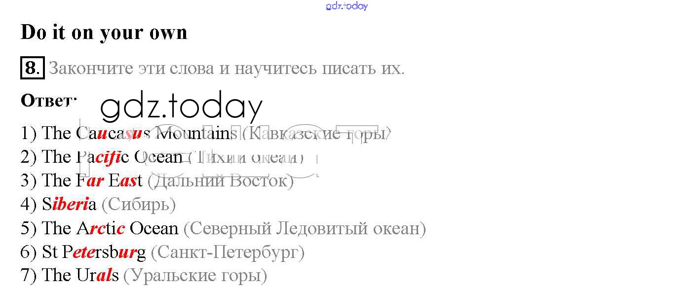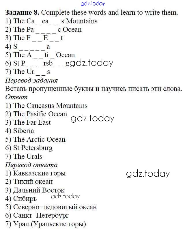 На страницах сайта gdz.today вы найдете учебный и вспомогательный материал, направленный на улучшения знаний школьной программы. ГДЗ - онлайн мир знаний Step 3 Решение к Unit 6. About Russia 8 Учебнику по Английскому языку для 5 класса Афанасьева, Михеева Дрофа Rainbow 2017