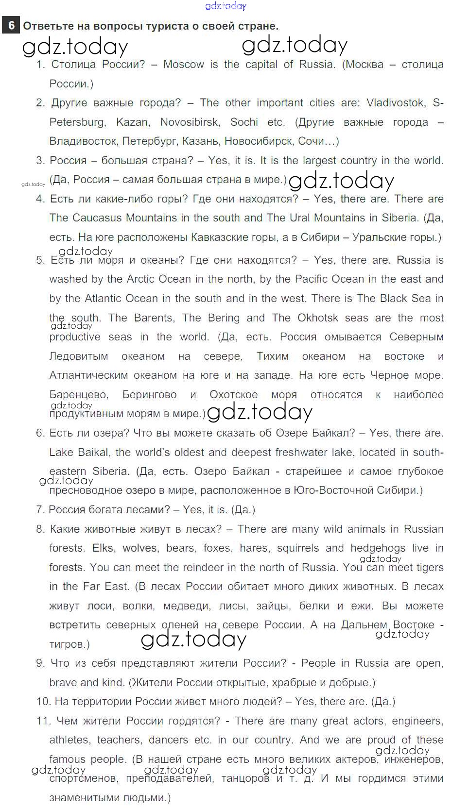 На страницах сайта gdz.today вы найдете учебный и вспомогательный материал, направленный на улучшения знаний школьной программы. ГДЗ - онлайн мир знаний Step 8. Round-up Решение к Unit 6. About Russia 6 Учебнику по Английскому языку для 5 класса Афанасьева, Михеева Дрофа Rainbow 2017