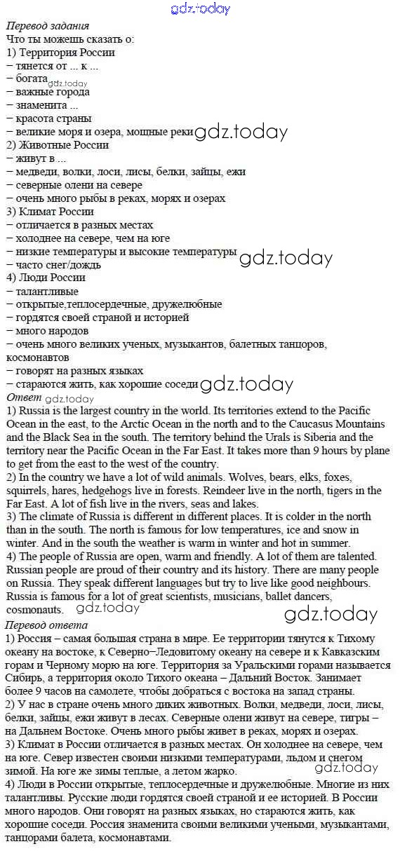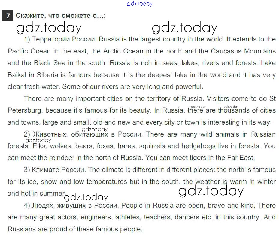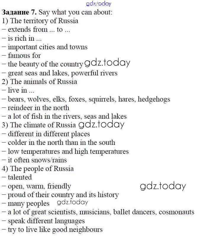 На страницах сайта gdz.today вы найдете учебный и вспомогательный материал, направленный на улучшения знаний школьной программы. ГДЗ - онлайн мир знаний Step 8. Round-up Решение к Unit 6. About Russia 7 Учебнику по Английскому языку для 5 класса Афанасьева, Михеева Дрофа Rainbow 2017