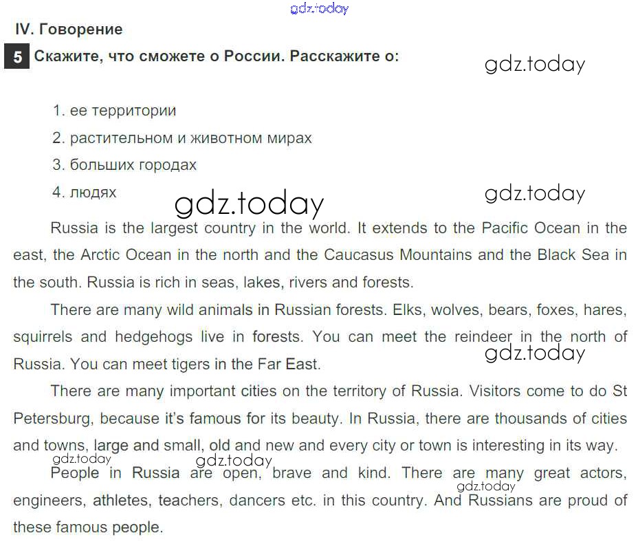На страницах сайта gdz.today вы найдете учебный и вспомогательный материал, направленный на улучшения знаний школьной программы. ГДЗ - онлайн мир знаний Step 9. Test Yourself Решение к Unit 6. About Russia 4 Учебнику по Английскому языку для 5 класса Афанасьева, Михеева Дрофа Rainbow 2017