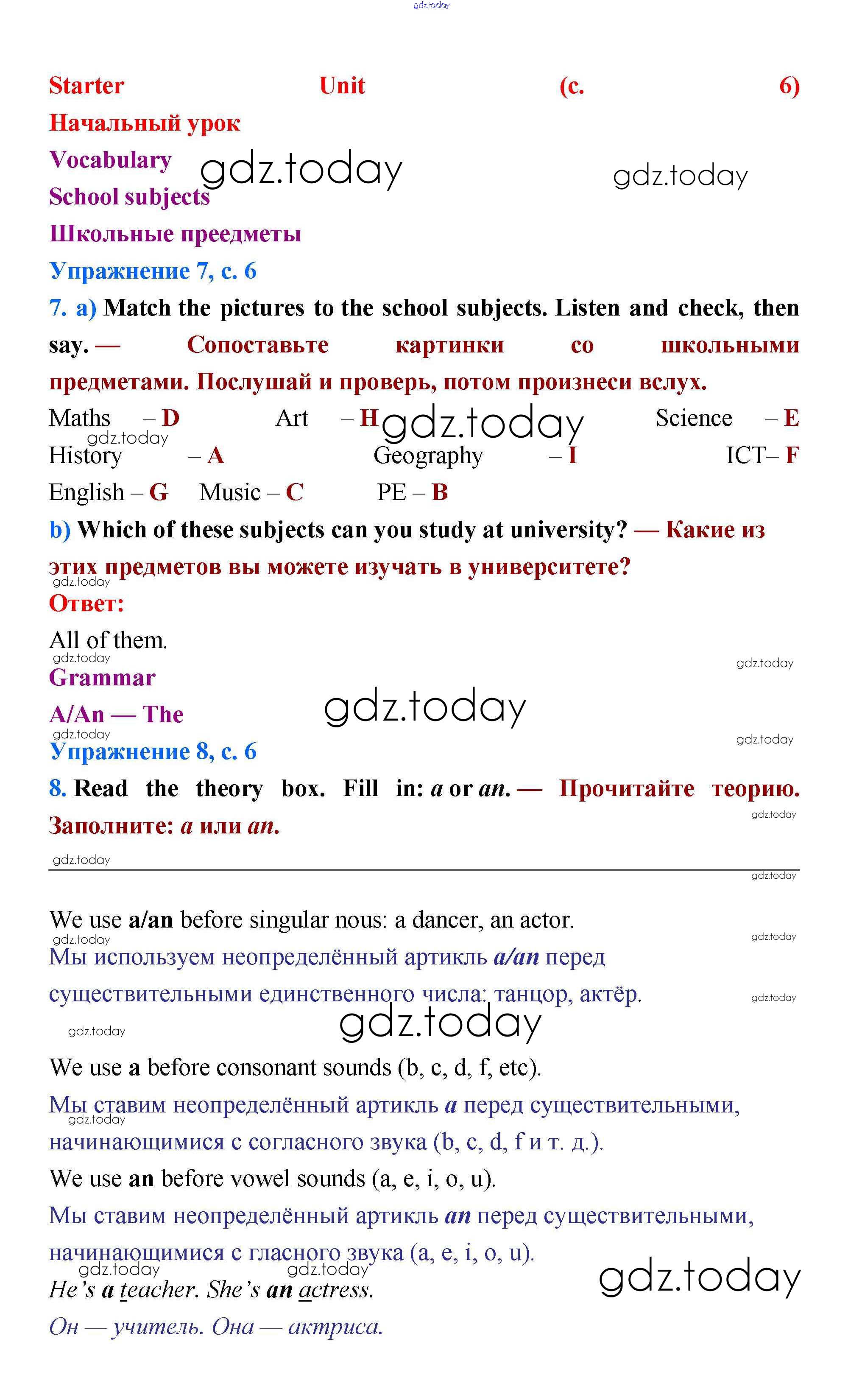 Ответы к Решение к Starter unit стр.6 Учебнику по Английскому языку для 5 класса Баранова, Эванс Углубленный уровень Просвещение Starlight 2015