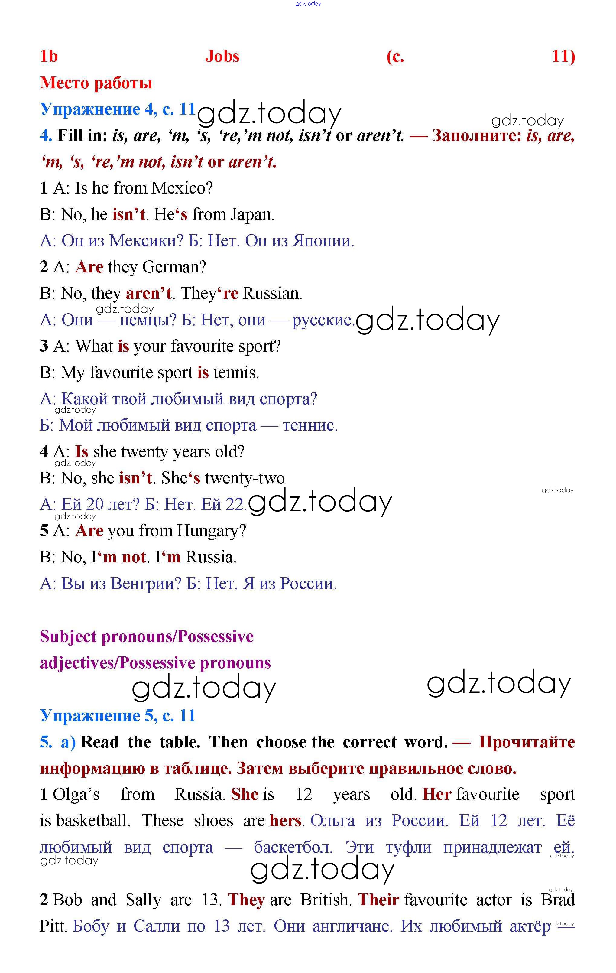 Ответы к Решение к Module 1. People around the world стр.11 Учебнику по Английскому языку для 5 класса Баранова, Эванс Углубленный уровень Просвещение Starlight 2015