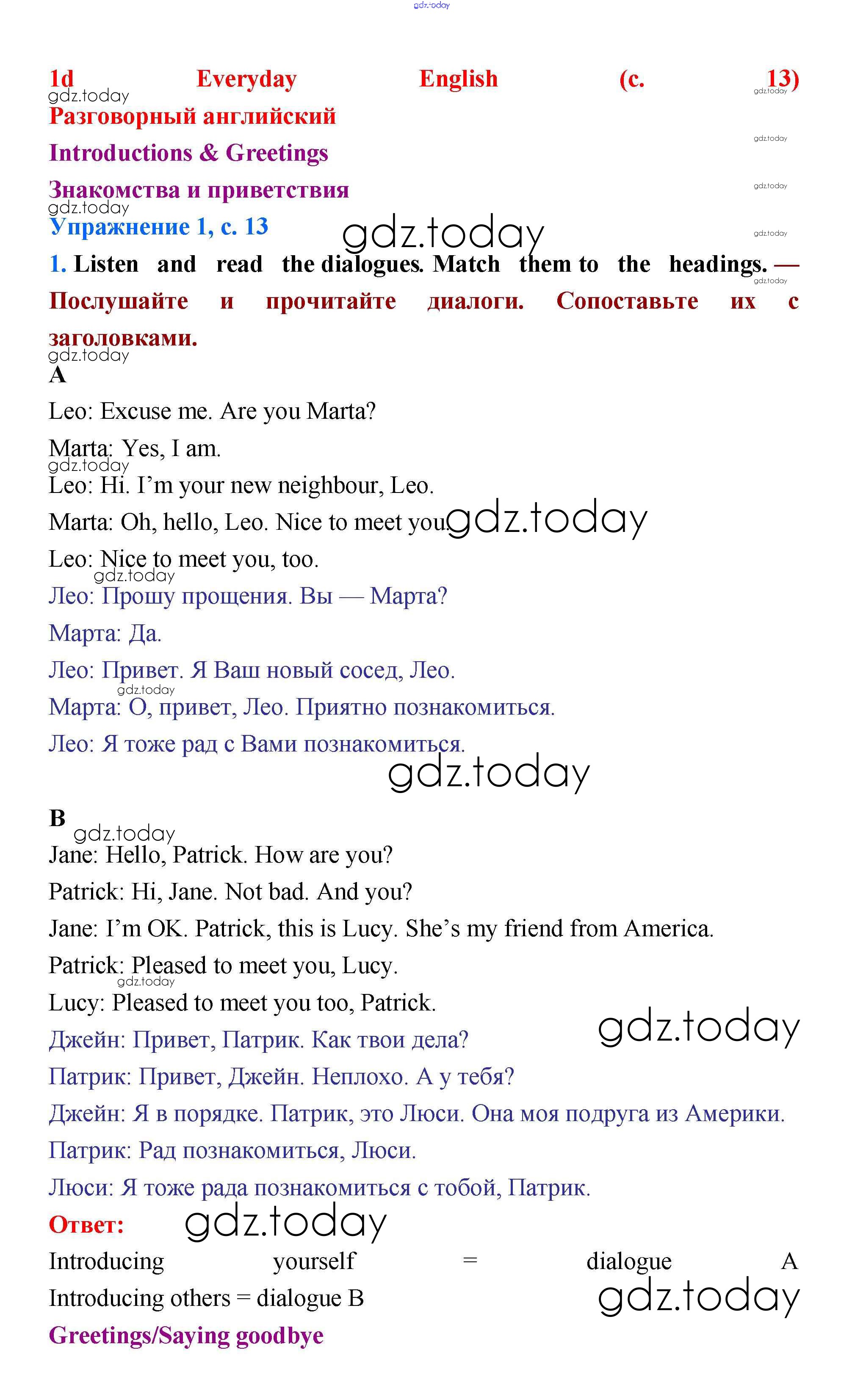 Ответы к Решение к Module 1. People around the world стр.13 Учебнику по Английскому языку для 5 класса Баранова, Эванс Углубленный уровень Просвещение Starlight 2015