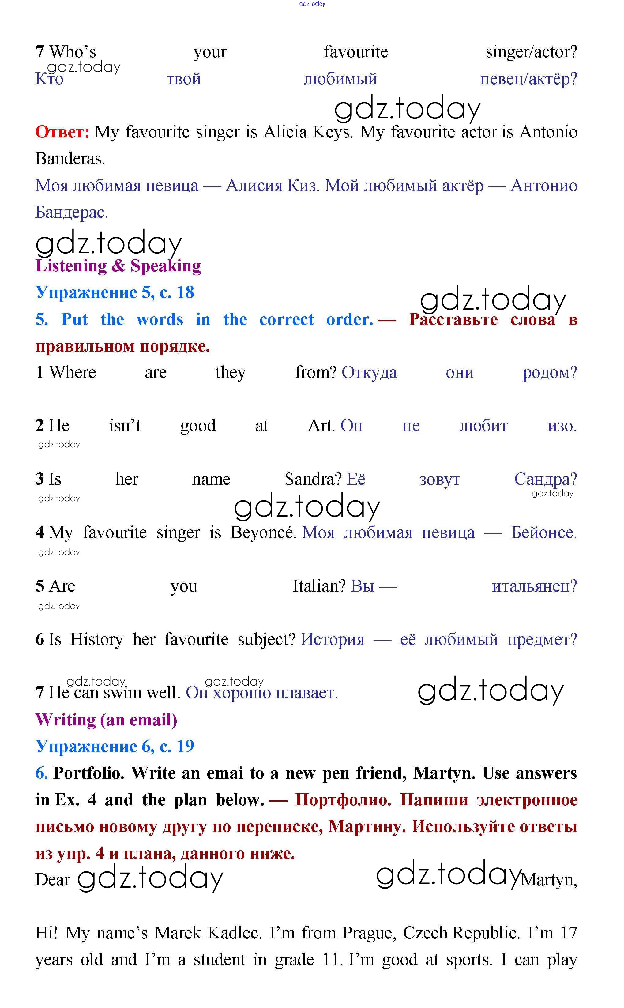 Ответы к Решение к Module 1. People around the world стр.19 Учебнику по Английскому языку для 5 класса Баранова, Эванс Углубленный уровень Просвещение Starlight 2015
