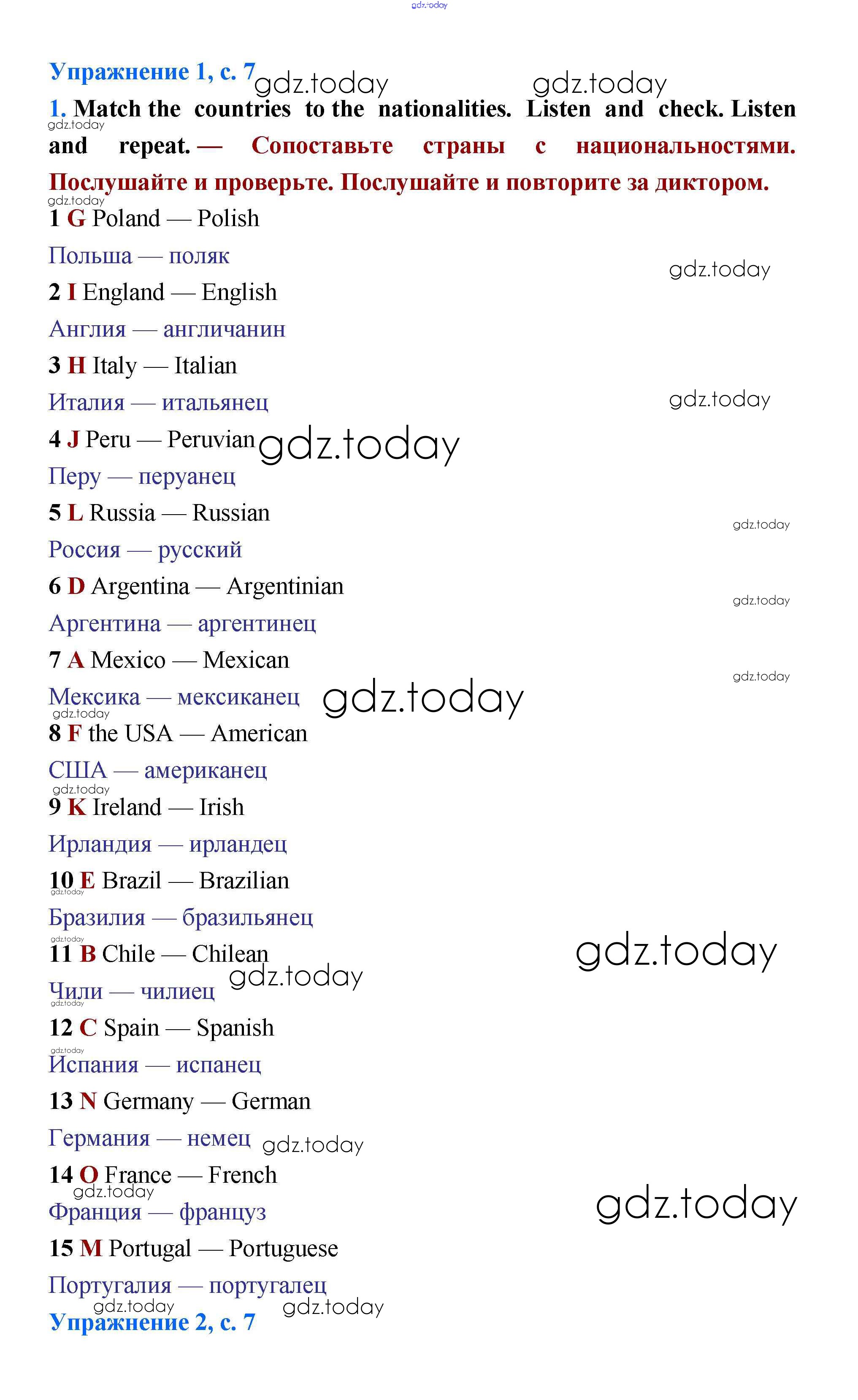 На страницах сайта gdz.today вы найдете учебный и вспомогательный материал, направленный на улучшения знаний школьной программы. ГДЗ - онлайн мир знаний Решение к Module 1. People around the world стр.7 Учебнику по Английскому языку для 5 класса Баранова, Эванс Углубленный уровень Просвещение Starlight 2015