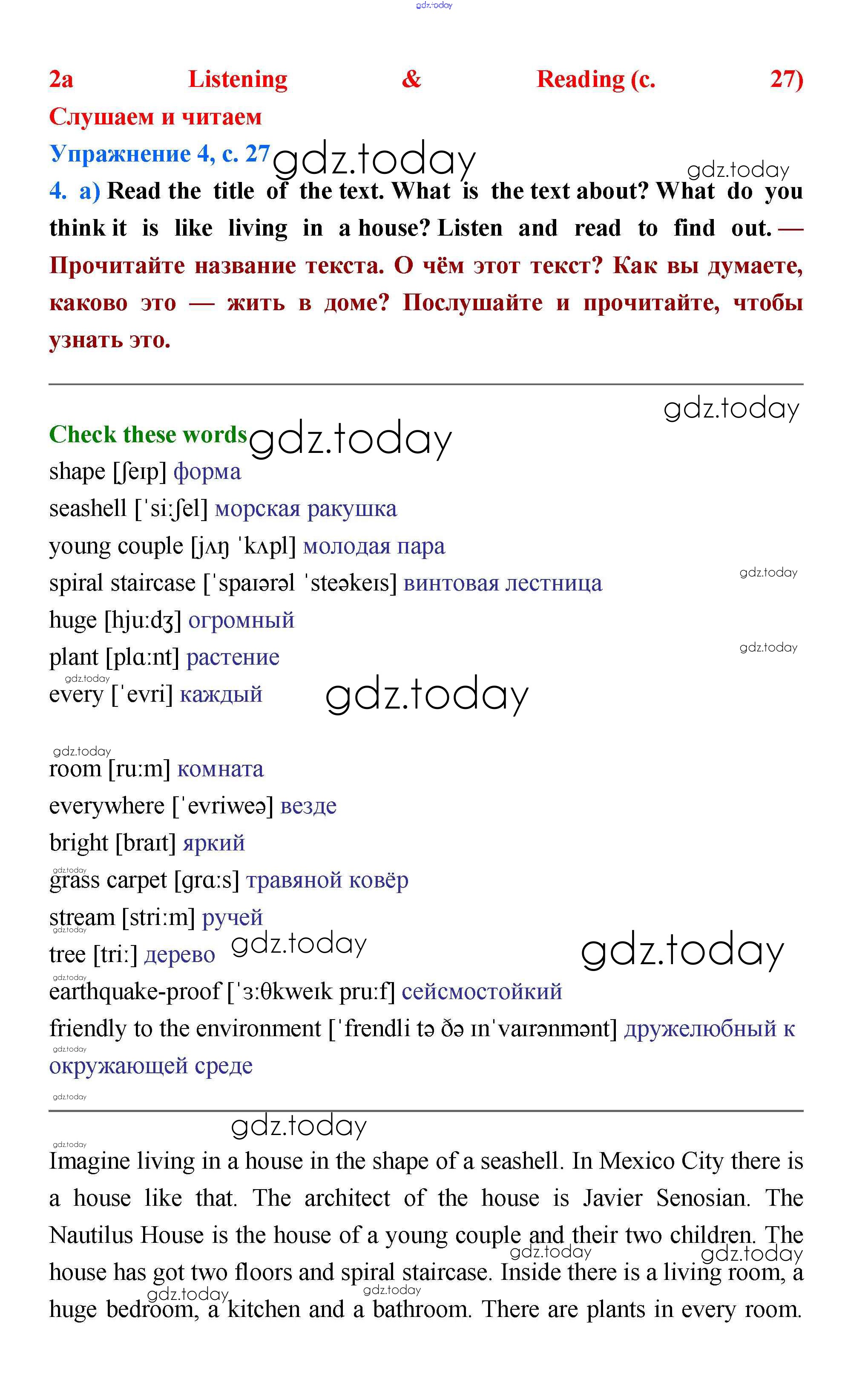 На страницах сайта gdz.today вы найдете учебный и вспомогательный материал, направленный на улучшения знаний школьной программы. ГДЗ - онлайн мир знаний Решение к Module 2. East, West, Home's Best стр.27 Учебнику по Английскому языку для 5 класса Баранова, Эванс Углубленный уровень Просвещение Starlight 2015