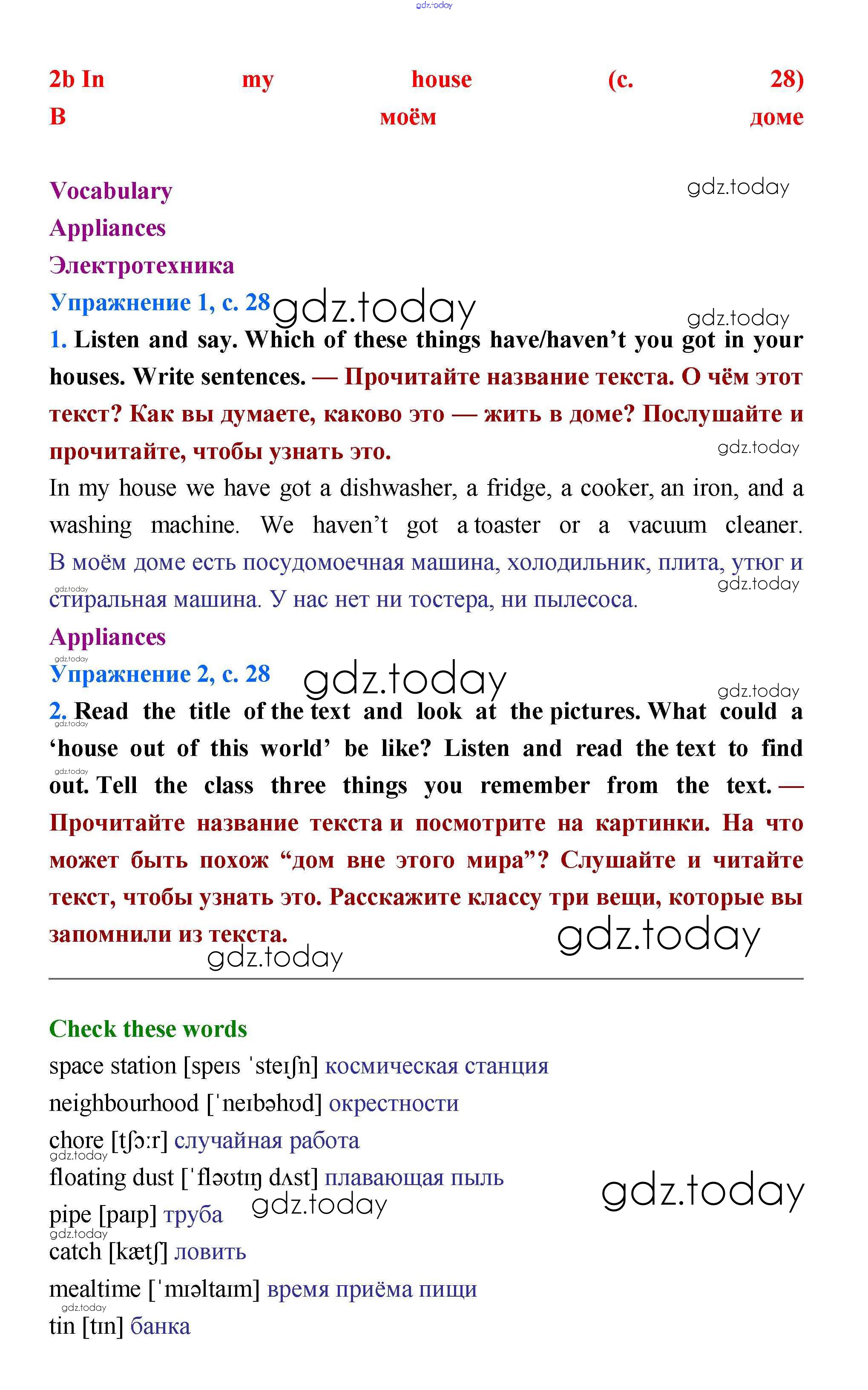 На страницах сайта gdz.today вы найдете учебный и вспомогательный материал, направленный на улучшения знаний школьной программы. ГДЗ - онлайн мир знаний Решение к Module 2. East, West, Home's Best стр.28 Учебнику по Английскому языку для 5 класса Баранова, Эванс Углубленный уровень Просвещение Starlight 2015