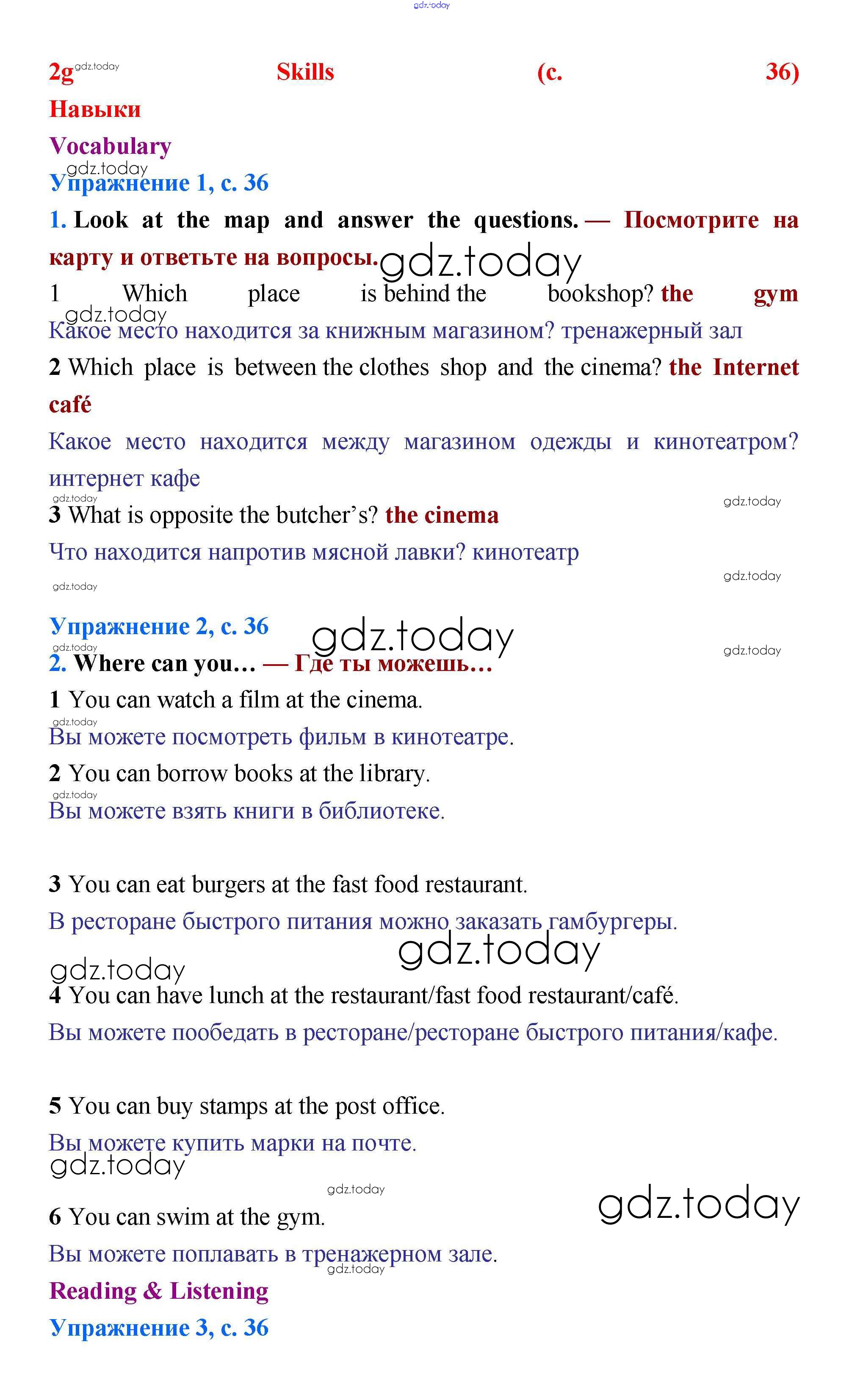На страницах сайта gdz.today вы найдете учебный и вспомогательный материал, направленный на улучшения знаний школьной программы. ГДЗ - онлайн мир знаний Решение к Module 2. East, West, Home's Best стр.36 Учебнику по Английскому языку для 5 класса Баранова, Эванс Углубленный уровень Просвещение Starlight 2015
