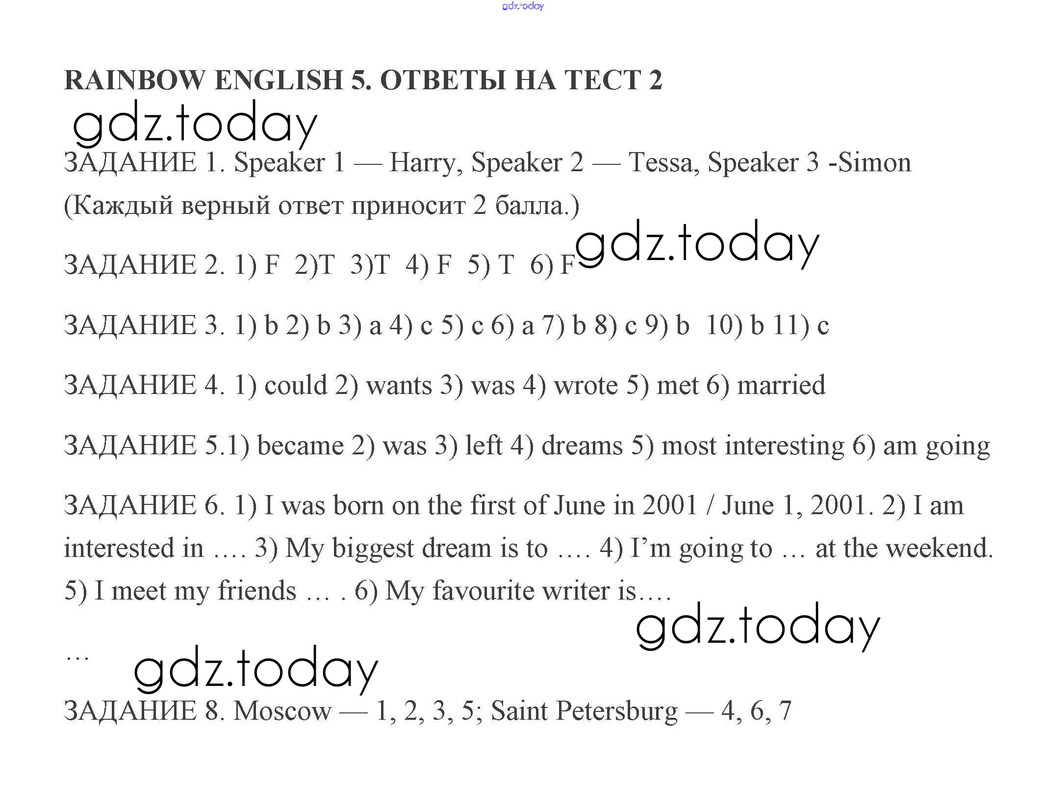 Ответы к Решение к тестам 2 Диагностическим работам по Английскому языку для 5 класса Афанасьева, Михеева Дрофа Rainbow 2019
