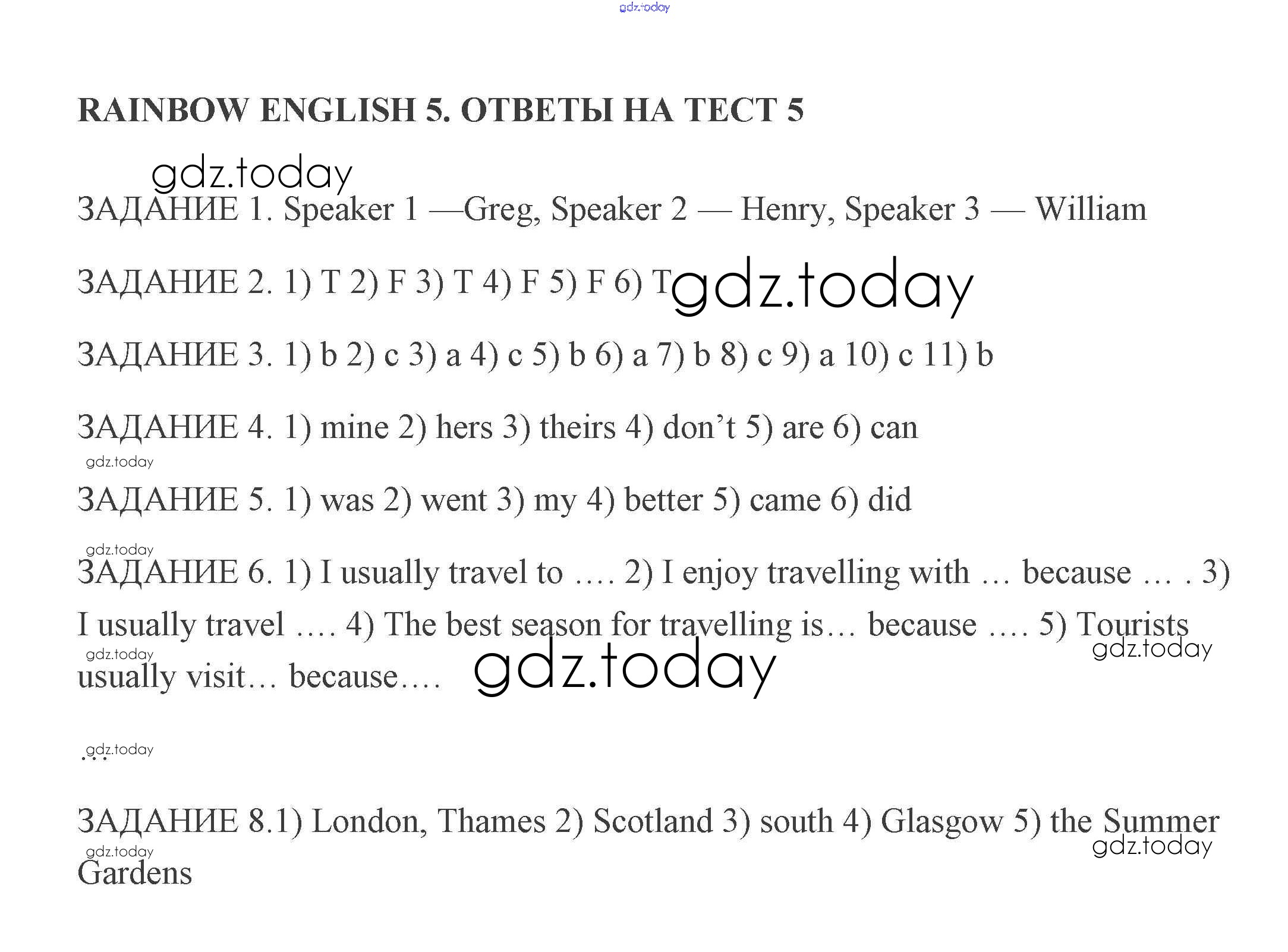 Ответы к Решение к тестам 5 Диагностическим работам по Английскому языку для 5 класса Афанасьева, Михеева Дрофа Rainbow 2019