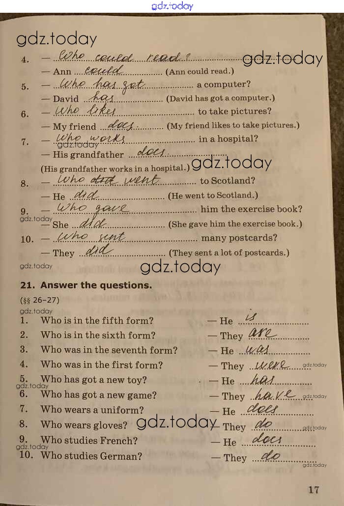 На страницах сайта gdz.today вы найдете учебный и вспомогательный материал, направленный на улучшения знаний школьной программы. ГДЗ - онлайн мир знаний Unit 1 Решение к части 1 стр.17 Сборнику упражнений по Английскому языку для 5-6 класса Барашкова Экзамен УМК 2017