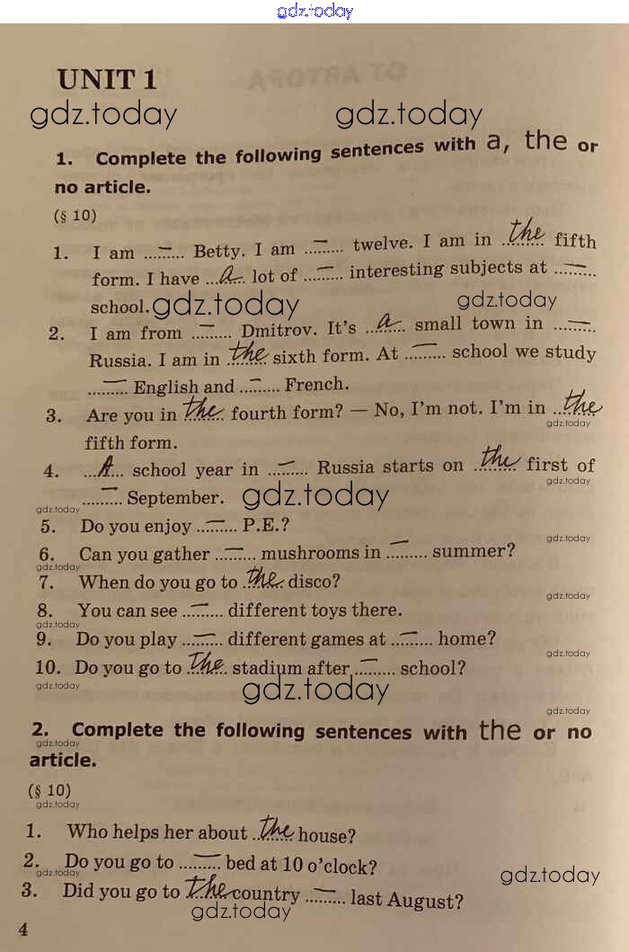 На страницах сайта gdz.today вы найдете учебный и вспомогательный материал, направленный на улучшения знаний школьной программы. ГДЗ - онлайн мир знаний Unit 1 Решение к части 1 стр.4 Сборнику упражнений по Английскому языку для 5-6 класса Барашкова Экзамен УМК 2017