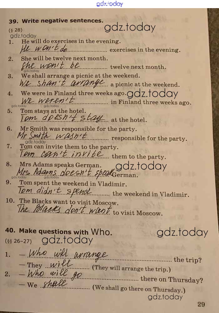 На страницах сайта gdz.today вы найдете учебный и вспомогательный материал, направленный на улучшения знаний школьной программы. ГДЗ - онлайн мир знаний Unit 2 Решение к части 1 стр.29 Сборнику упражнений по Английскому языку для 5-6 класса Барашкова Экзамен УМК 2017