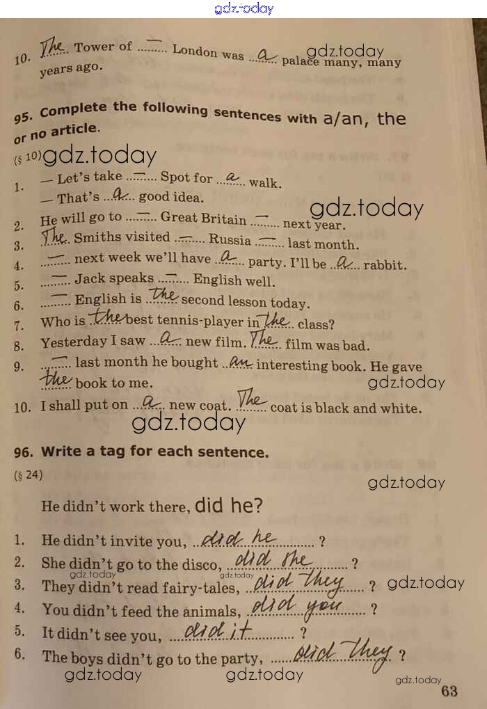 На страницах сайта gdz.today вы найдете учебный и вспомогательный материал, направленный на улучшения знаний школьной программы. ГДЗ - онлайн мир знаний Unit 4 Решение к части 1 стр.63 Сборнику упражнений по Английскому языку для 5-6 класса Барашкова Экзамен УМК 2017