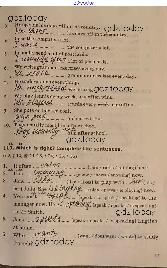 На страницах сайта gdz.today вы найдете учебный и вспомогательный материал, направленный на улучшения знаний школьной программы. ГДЗ - онлайн мир знаний Unit 4 Решение к части 1 стр.77 Сборнику упражнений по Английскому языку для 5-6 класса Барашкова Экзамен УМК 2017