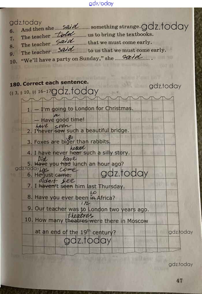 На страницах сайта gdz.today вы найдете учебный и вспомогательный материал, направленный на улучшения знаний школьной программы. ГДЗ - онлайн мир знаний Unit 6 Решение к части 2 стр.47 Сборнику упражнений по Английскому языку для 5-6 класса Барашкова Экзамен УМК 2017
