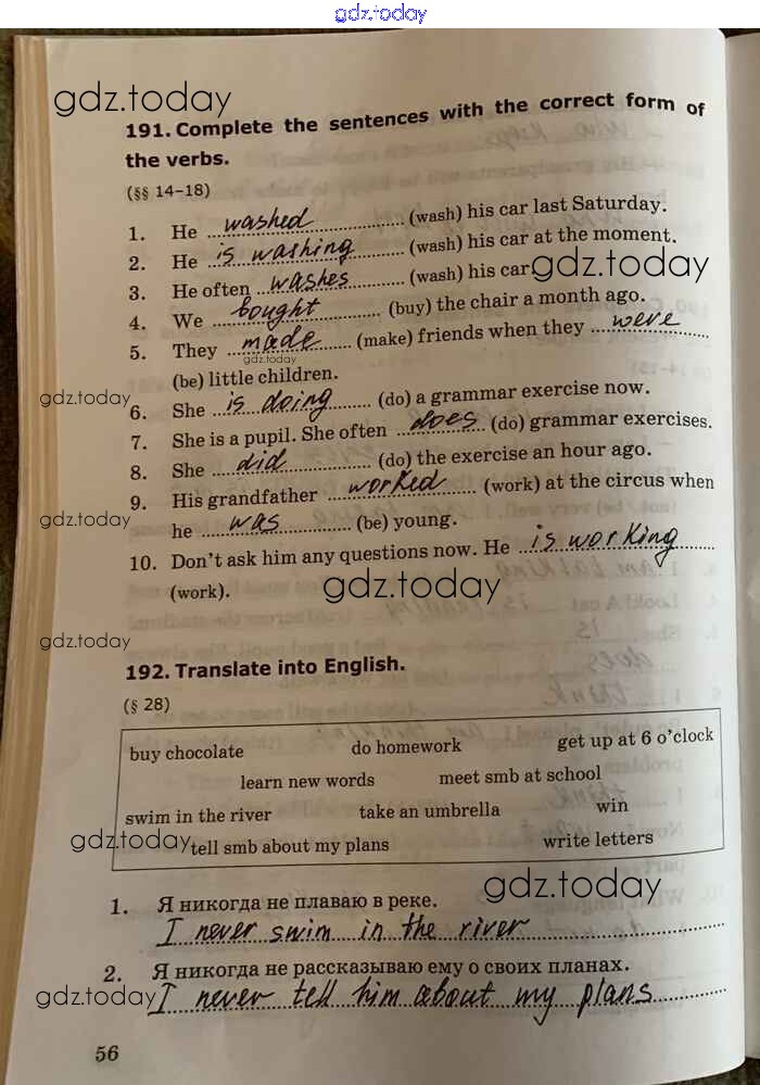 На страницах сайта gdz.today вы найдете учебный и вспомогательный материал, направленный на улучшения знаний школьной программы. ГДЗ - онлайн мир знаний Unit 7 Решение к части 2 стр.56 Сборнику упражнений по Английскому языку для 5-6 класса Барашкова Экзамен УМК 2017
