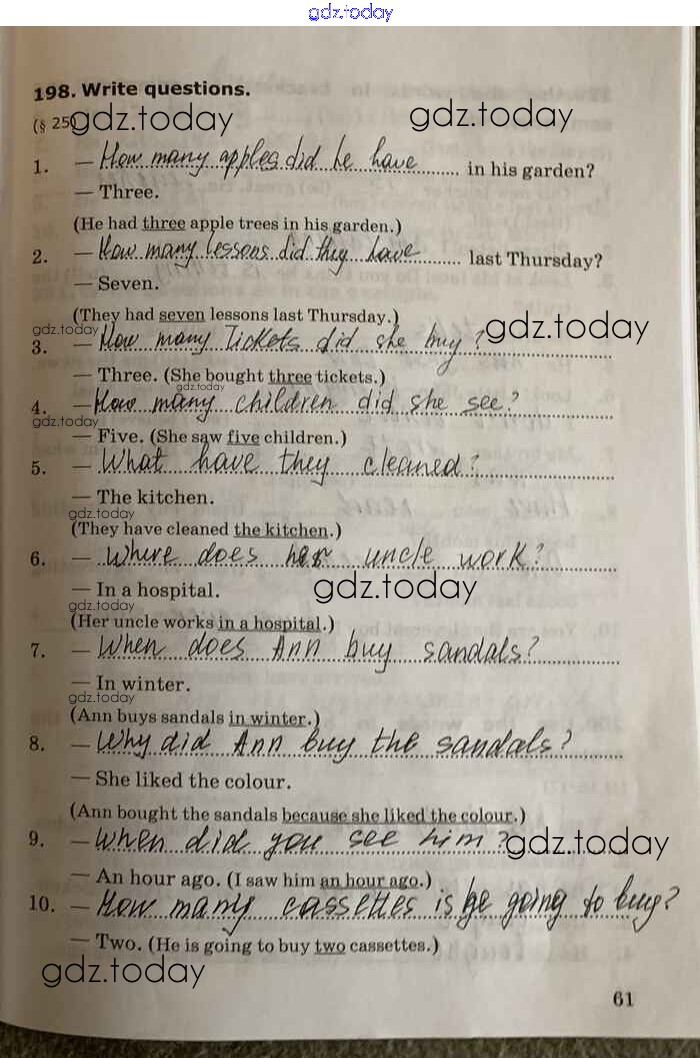 На страницах сайта gdz.today вы найдете учебный и вспомогательный материал, направленный на улучшения знаний школьной программы. ГДЗ - онлайн мир знаний Unit 7 Решение к части 2 стр.61 Сборнику упражнений по Английскому языку для 5-6 класса Барашкова Экзамен УМК 2017