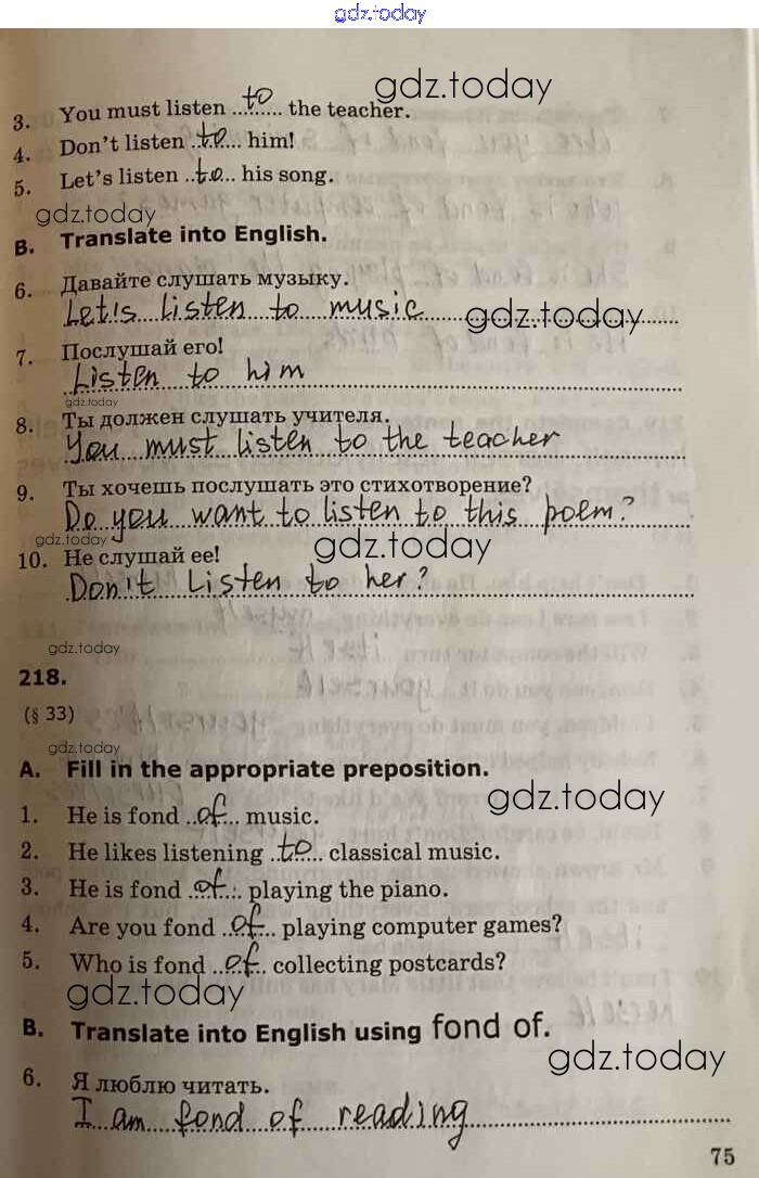 На страницах сайта gdz.today вы найдете учебный и вспомогательный материал, направленный на улучшения знаний школьной программы. ГДЗ - онлайн мир знаний Unit 8 Решение к части 2 стр.75 Сборнику упражнений по Английскому языку для 5-6 класса Барашкова Экзамен УМК 2017