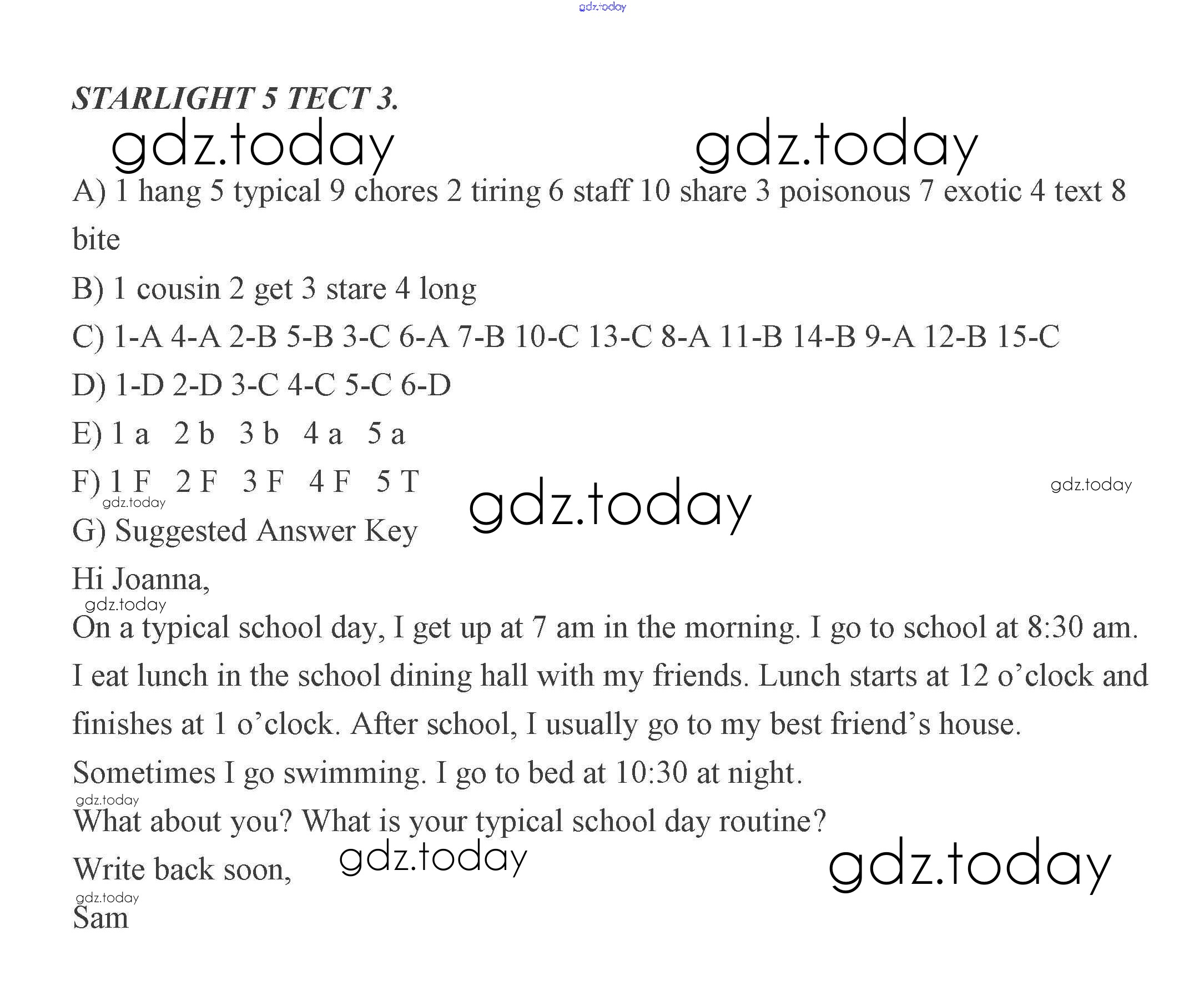 На страницах сайта gdz.today вы найдете учебный и вспомогательный материал, направленный на улучшения знаний школьной программы. ГДЗ - онлайн мир знаний Решение к тестам 3 Контрольным заданиям по Английскому языку для 5 класса Баранова, Дули Углубленный уровень Просвещение Starlight 2017