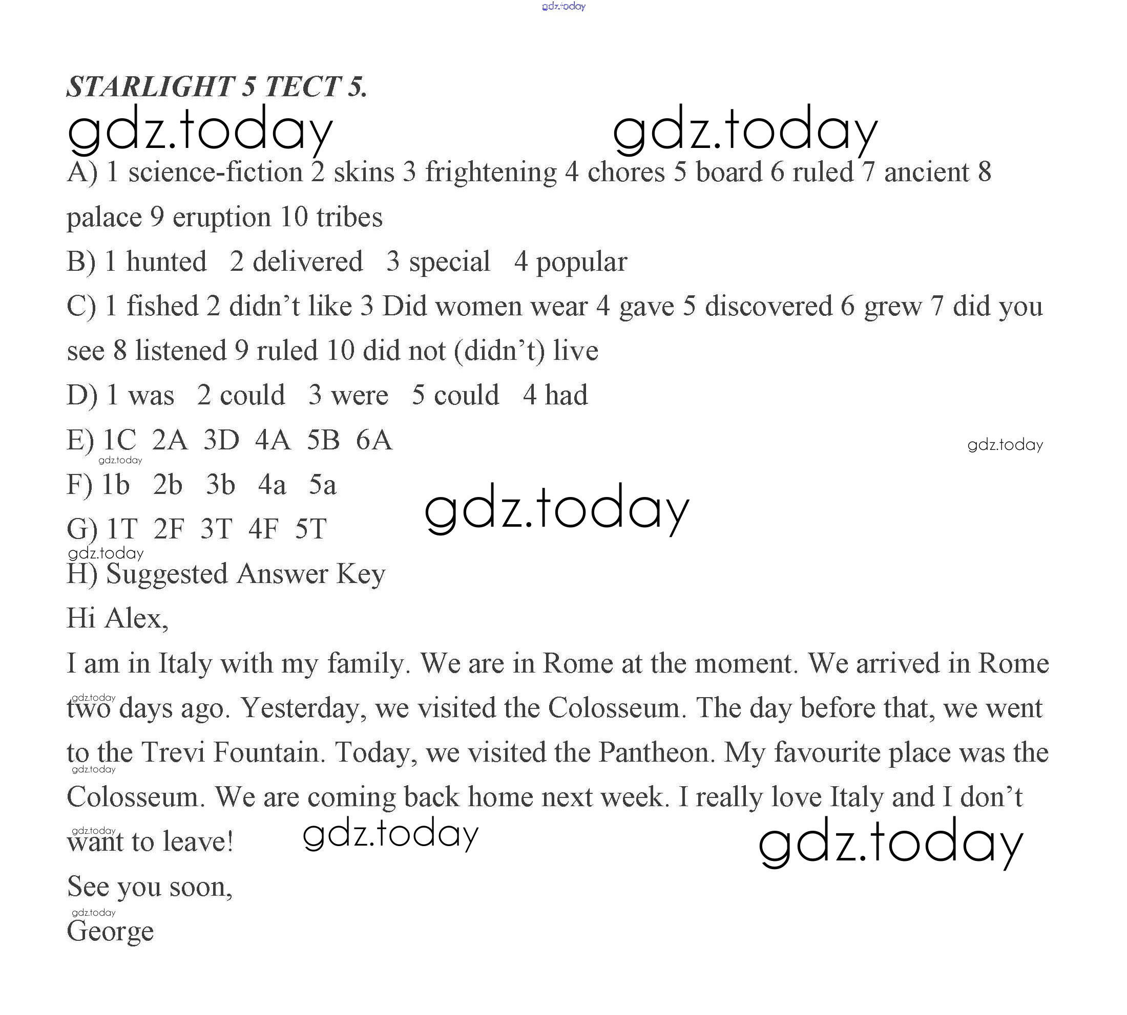 Ответы к Решение к тестам 5 Контрольным заданиям по Английскому языку для 5 класса Баранова, Дули Углубленный уровень Просвещение Starlight 2017