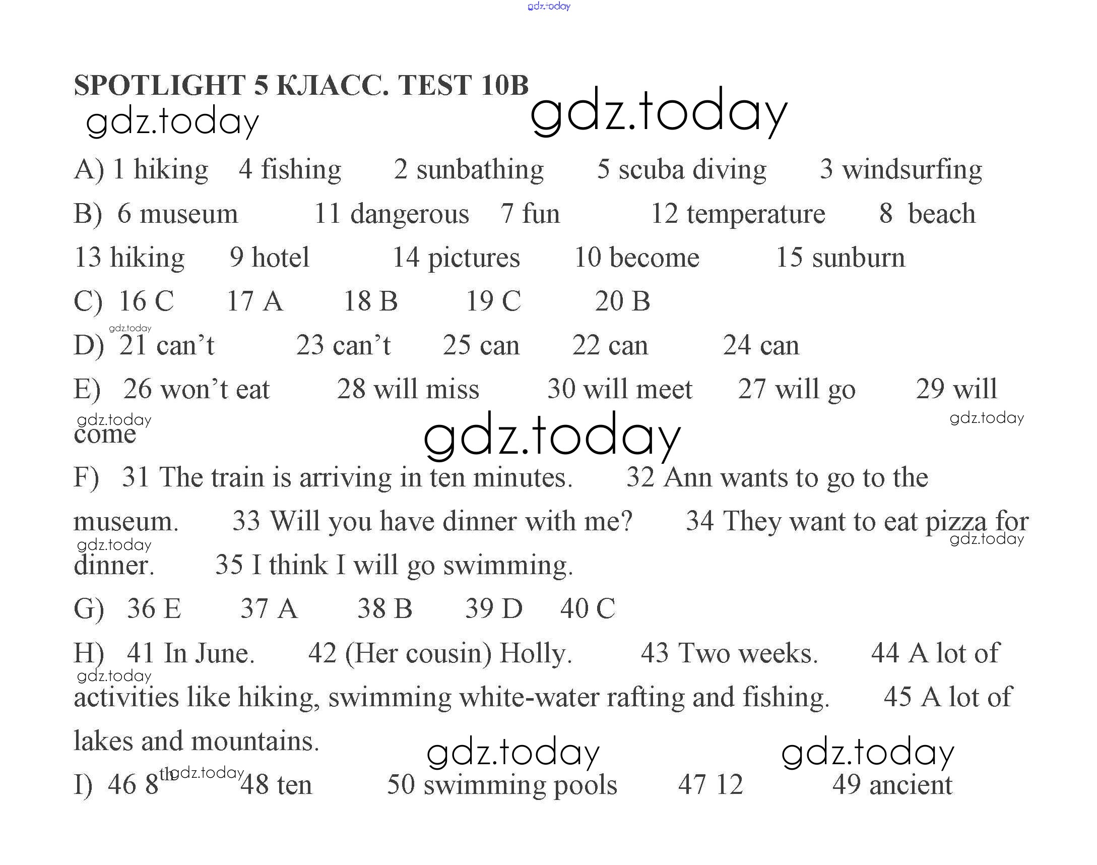 Ответы к Решение к тестам 10 (Варианты) 2 Контрольным заданиям по Английскому языку для 5 класса Ваулина, Дули Просвещение Spotlight 2018