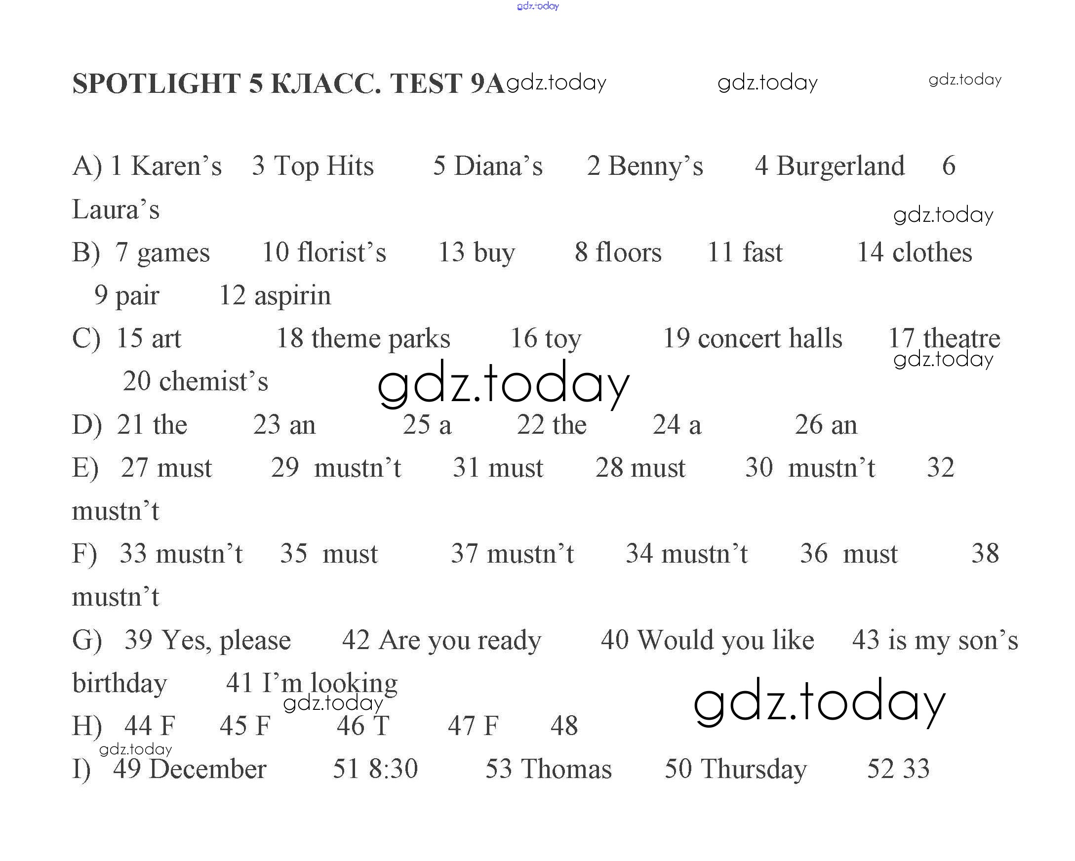 Ответы к Решение к тестам 9 (Варианты) 1 Контрольным заданиям по Английскому языку для 5 класса Ваулина, Дули Просвещение Spotlight 2018